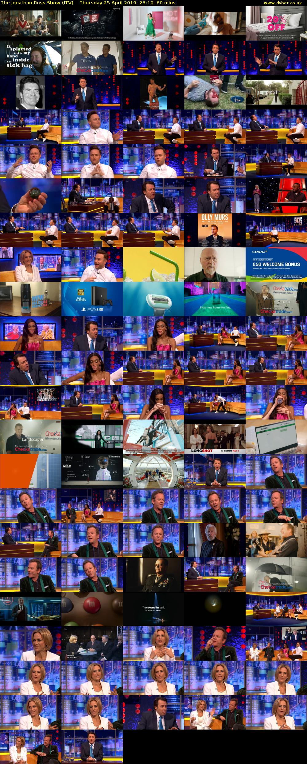 Jonathan's guests include the star of Designated Survivor and 24, Kiefer Sutherland, supermodel Winnie Harlow and broadcaster Emily Maitlis. The Voice UK coach Olly Murs performs. [S] S14 Ep8