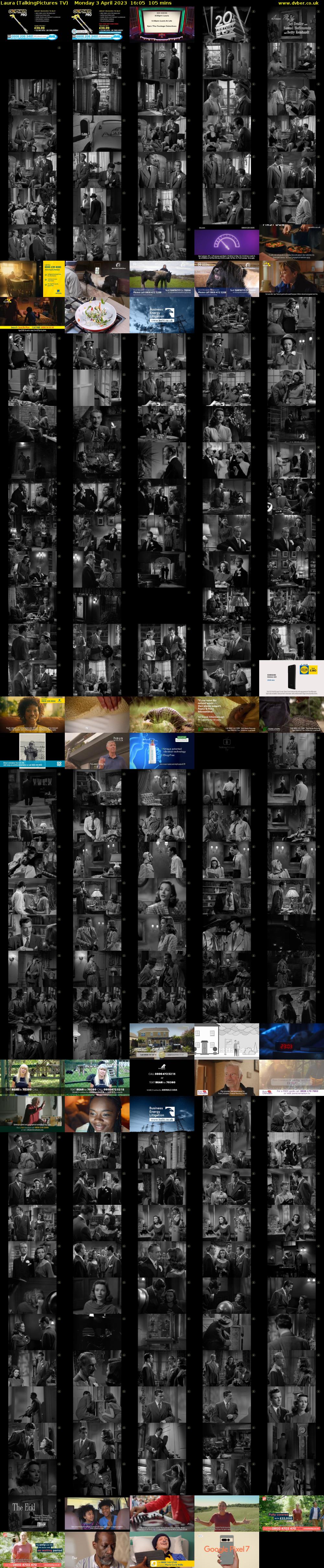 1944. Mystery. Directed by Otto Preminger. Stars Gene Tierney, Dana Andrews & Clifton Webb. A police detective becomes mesmerised by the portrait of the woman whose murder he is investigating. [S]